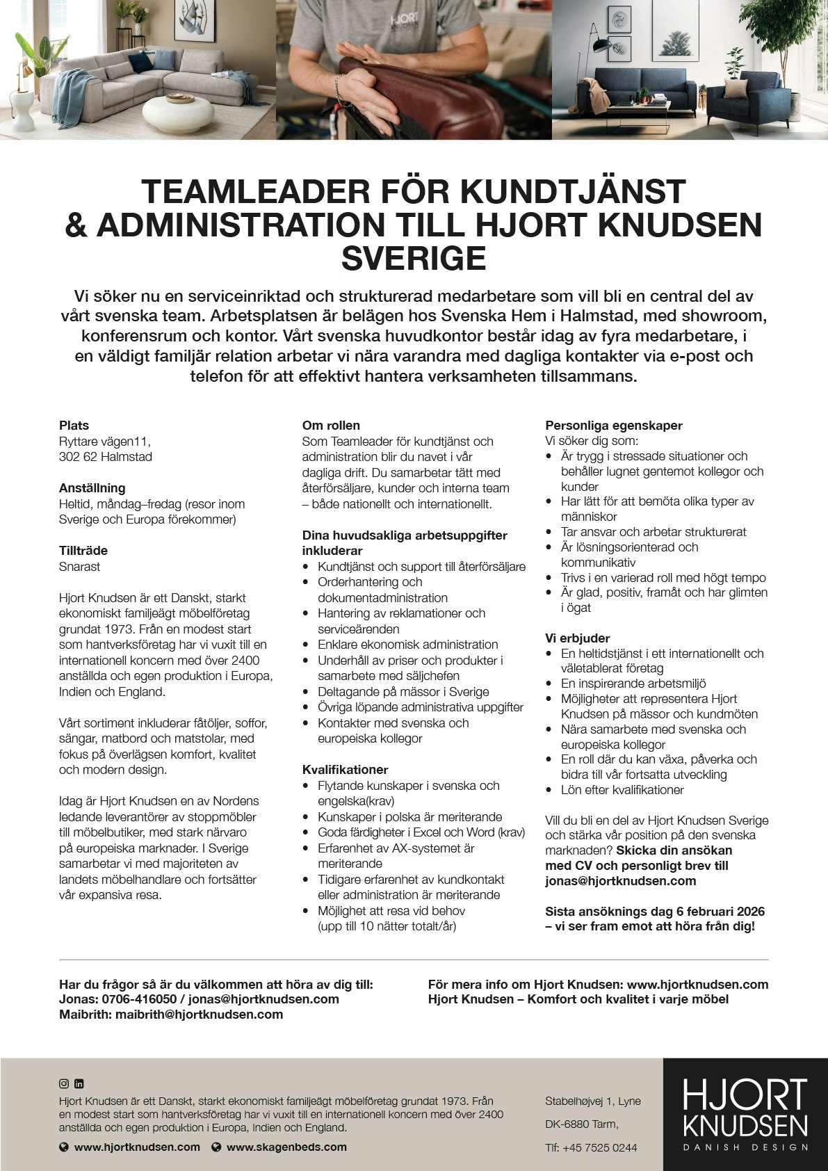 TEAMLEADER FÖR KUNDTJÄNST & ADMINISTRATION TILL HJORT KNUDSEN SVERIGE